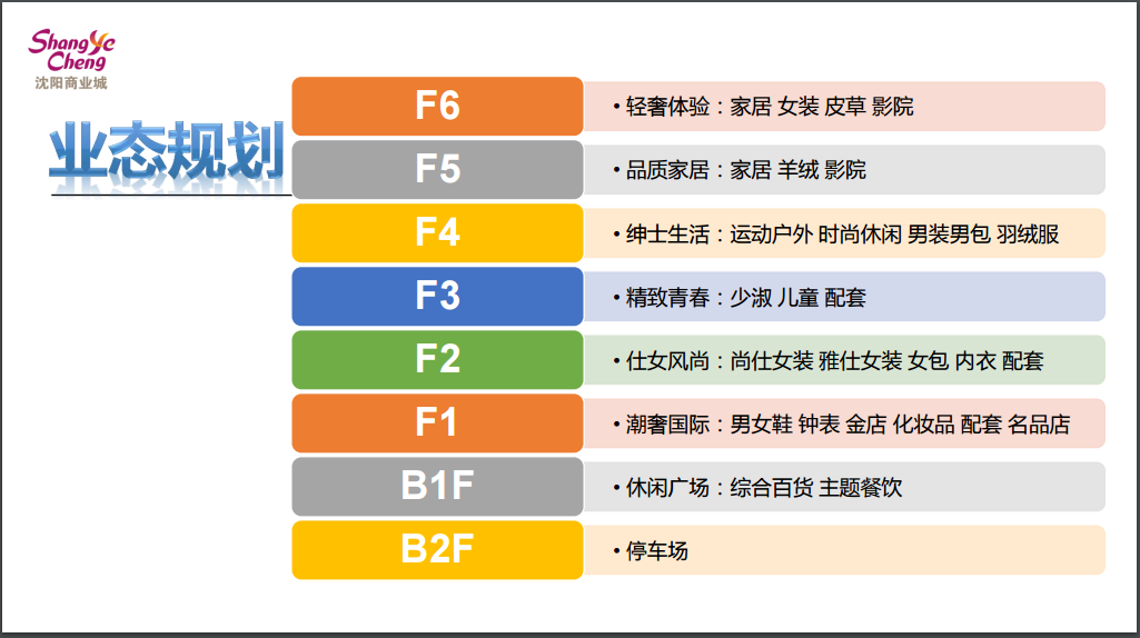 發(fā)布會現(xiàn)場,鐘總以“三個堅持”和“三個改變”明確了沈陽商業(yè)城的規(guī)劃定位調(diào)整。她表示:“我們將一如既往堅持英倫風格的建筑定位,堅持中高端的檔次定位,堅持以販物、餐飲、體驗、休閑娛樂為主的功能定位。同時,將主題定位向突顯風尚、文化、體驗、有特色的城市型時尚百貨轉(zhuǎn)型;調(diào)整業(yè)態(tài)業(yè)種配比定位,增加餐飲、娛樂休閑、兒童業(yè)態(tài);調(diào)整功能分區(qū)定位,使主體功能更利于消費者聚焦定向”。
